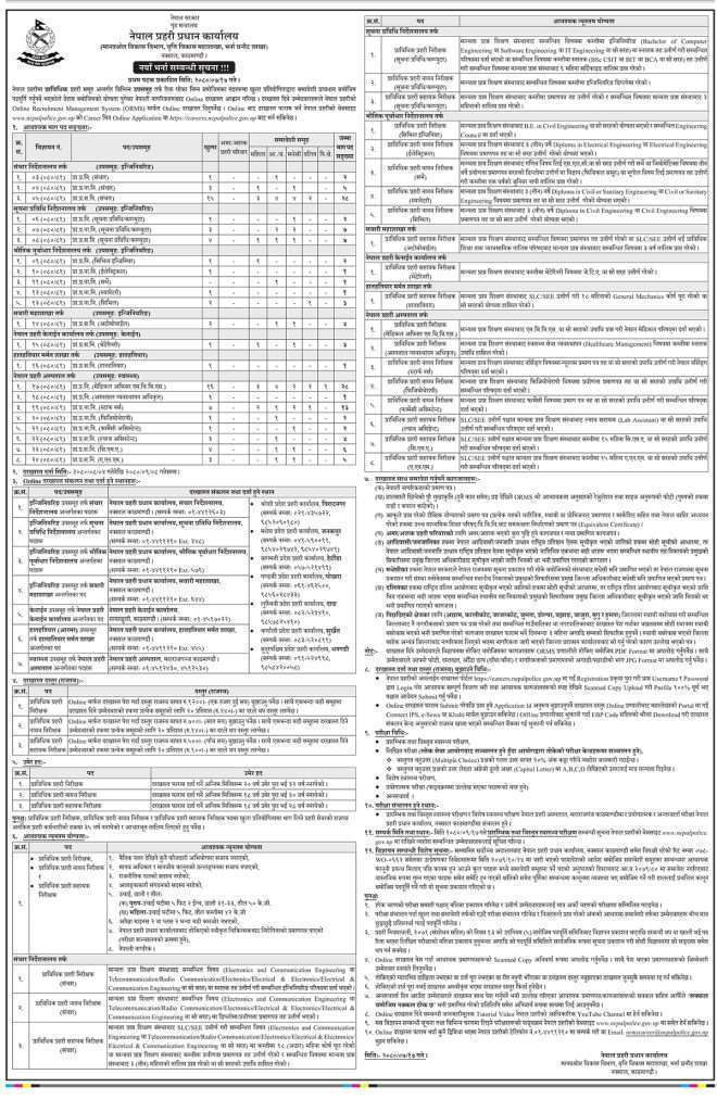 नेपाल प्रहरीले प्राविधिक प्रहरी समूहअन्तर्गत विभिन्न उपसमूहतर्फ रिक्त पदहरूमा आवेदन खुलाएको हो ।