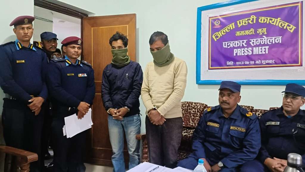 पकाउ पर्नेमा मुगुको छायानाथ रारा नगरपालिका-७ पिना घर भई हाल बाँकेको वैजनाथ गाउँपालिका-१ चिसापानी बस्ने ३१ वर्षीय काले भनिने गोर्खराज शाही र छायानाथ रारा-६ मन्दु बस्ने ३१ वर्षीय गोपालबहादुर बोहरा रहेका छन् ।