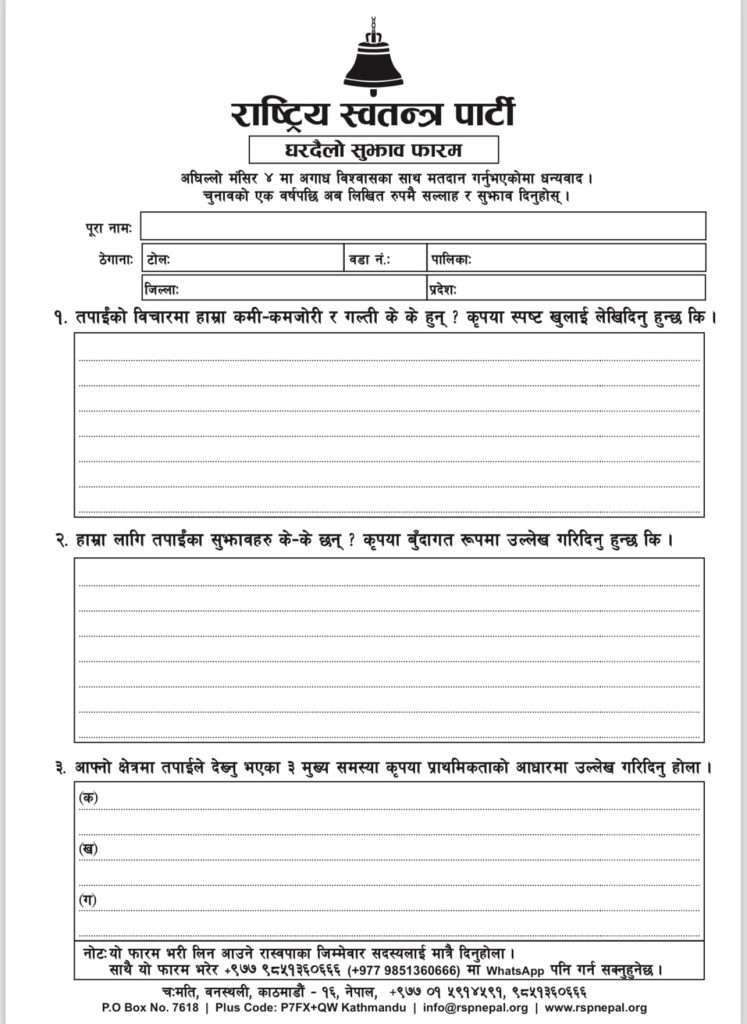 काठमाडौं, २ मंशिर । राष्ट्रिय स्वतन्त्र पार्टीका सांसदहरु आजबाट घरदैलो गर्ने भएका छन् ।