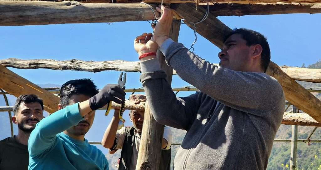 कांग्रेस नेता प्रदीप पौडेल भूकम्पपीडितको घरटहरा बनाउँदै