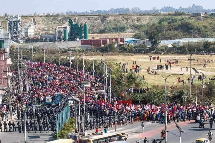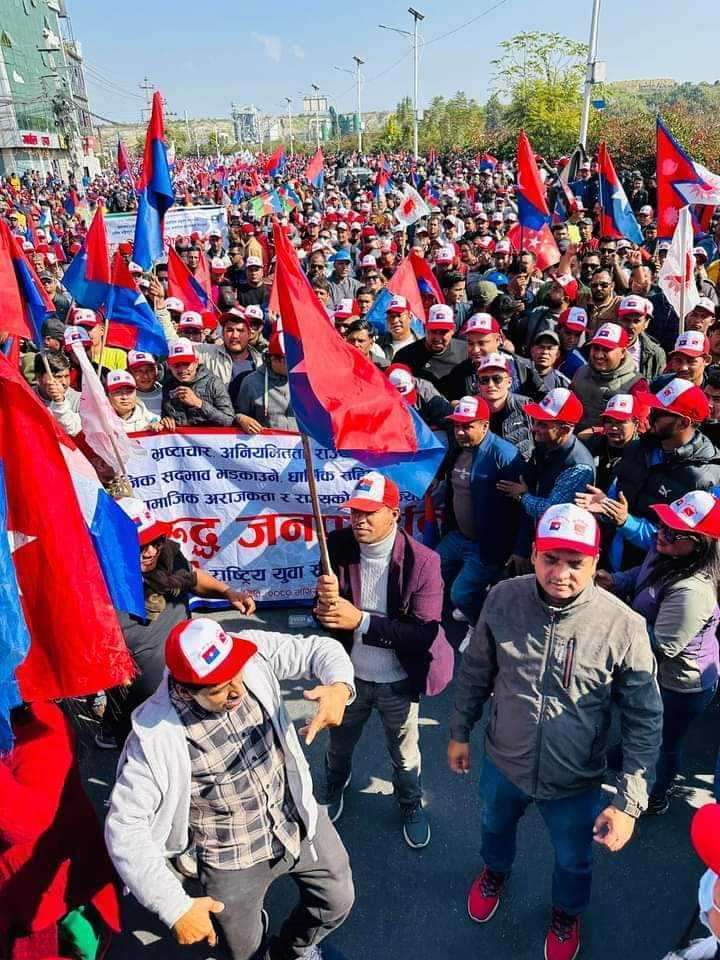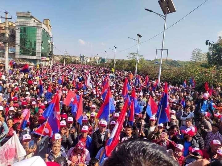 काठमाडौँ, ७ मङ्सिर । एमाले निकट युवा सङ्घले काठमाडौँको तीनकुनेमा शक्ति प्रदर्शन गरिरहेको छ ।