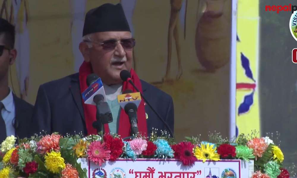 भरतपुर भ्रमण वर्षको उद्घाटन समारोहमा शुभकामना मन्तव्य राख्दै ओलीले भने -म यहाँबाट भरतपुर घुम्न आउन अनुरोध गर्दछु । गीतै छ नि, ‘लौँ हिँड चितवन दुई दिनको जिन्दगी बिताउन.. ।’